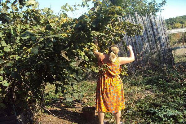 Урожай начинайте собирать, когда орешки начинают выпадать из обертки. Делайте это вручную или просто встряхните деревце. Далее последует этап отделения от плодов обертки и просушка урожая.