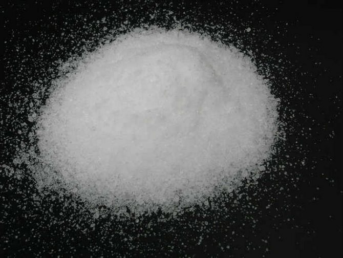 Химикат выпускают в виде белых гранул. Массовая доля азота – не менее 18%. Корни растений легко поглощают вещество. Из-за низкого биологического разложения средство вымывается из гумусного слоя сточными водами. Препарат повышает кислотность почвы, поэтому на дерново-подзолистом грунте в список обязательных процедур входит одновременное известкование.