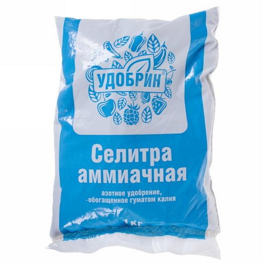 Аммиачная селитра – это азотное удобрение, в котором находится двойная концентрация активного компонента. Сырье можно использовать на всех почвах и для всех растений. Форма химиката быстро усваивается, не разлагаясь в почве. Удобрение осенью и весной вносят в перекопанную землю участка, в посадочную яму. Благодаря его применению повышается устойчивость культур к неблагоприятным внешним условиям, улучшается развитие листвы, побегов. Чтобы снизить уровень кислотности, надо использовать нейтрализаторы.
