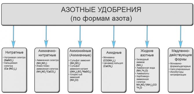 Классификация азотных удобрений содержит 5 основных групп, разделяющихся по концентрации азота и дополнительным веществам в составе: