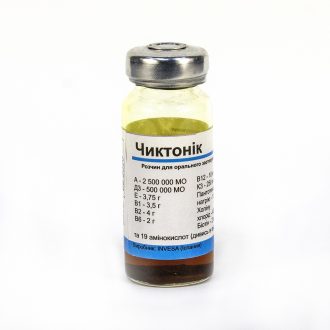 «Чиктоник» – препарат производства Испании. Это непрозрачная жидкость темно-коричневого окраса, имеет немного сладковатый запах. Препарат применяется перорально. Для продажи его расфасовывают в темные стеклянные флаконы по 10 мл и белые пластиковые по 1, 5 и 25 л. Упаковка большего объема предназначена для применения на крупном поголовье уток.
