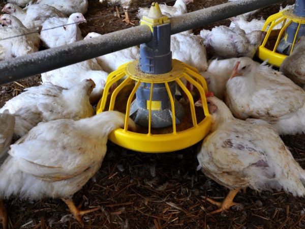 Кормушки и поилки для бройлеров необходимы для дозирования корма. Автокормушки с бортами необходимы для того, чтобы птицы не могли разгребать корм и затаптывать его. У некоторых пород птиц могут возникать проблемы при переедании. Нужно ограничивать количество корма в раздатчике.