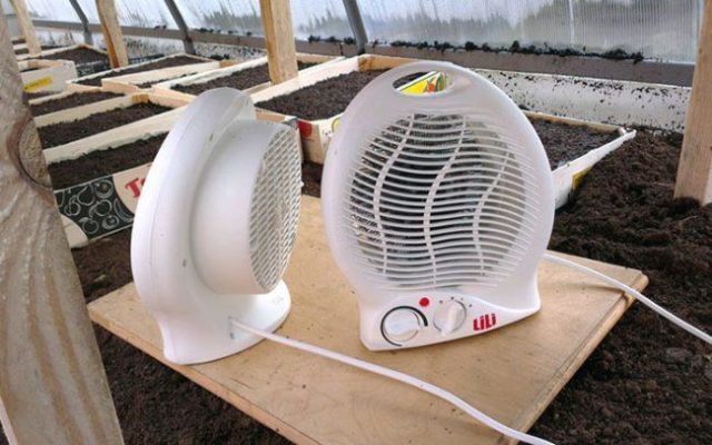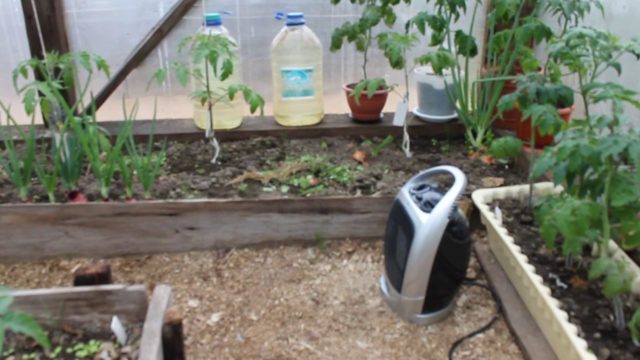 Также защитить растения от холодного воздуха можно при помощи обогревательных установок с вентилятором. Они представляют интерес не только благодаря своим небольшим размерам, но и доступной цене. В процессе работы эти аппараты заставляют двигаться теплые воздушные массы таким образом, чтобы каждая зона была снабжена равномерным количеством тепла. Используя такие установки, садоводы получают возможность не только решить вопрос с обогревом теплицы, но и влиять на уровень влажности в парнике, что только идет на пользу выращиваемым растениям.
