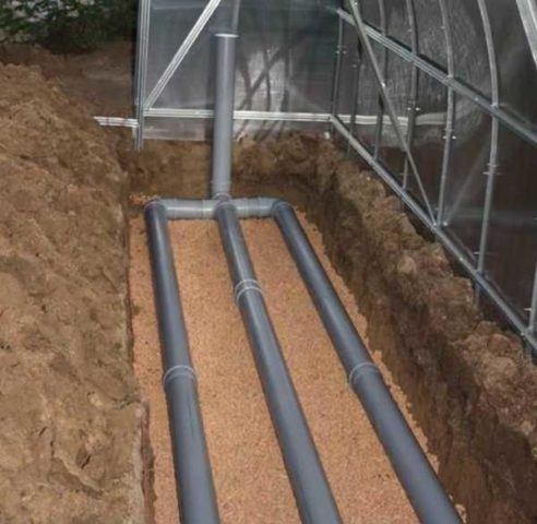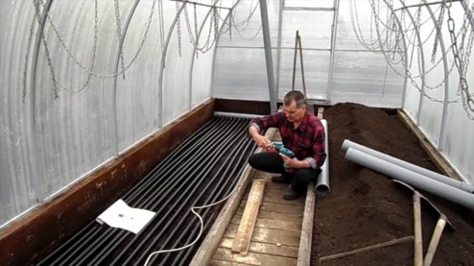 Оно работает так же, как домашнее отопление – горячая вода движется по трубе и прогревает землю. Можно провести его прямо из дома, либо установить отдельный котел. Расположите трубы по периметру теплицы и между грядками.