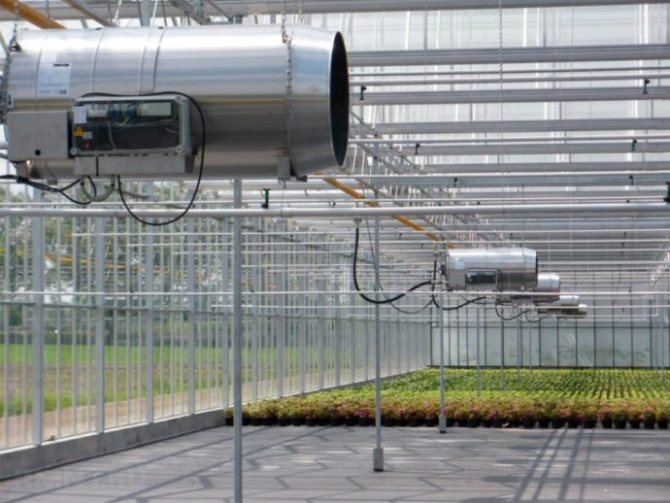 Несмотря на свое грозное название, эти установки являются обычными тепловентиляторами, подающими нагретый воздух в теплицу.