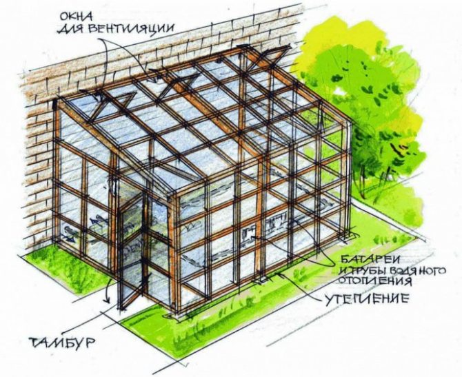 Сооружение также надо оснастить системой проветривания, ведь под прямыми солнечными лучами даже в зимний период температура воздуха может достигать значительных значений.