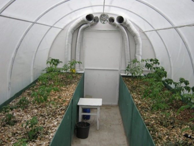 Если достигается минимально допустимый температурный показатель, то автоматически подключаются конвекторы, которые согревают культуры. Помимо этого, почва дополнительно греется благодаря органическому мусору, который способен быстро излучать тепло.