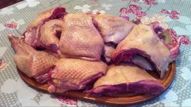 - Рубить мясо желательно на несколько порционных кусков, не забыв предварительно избавиться от сальной железы. Последняя может сделать вкус и запах утиного мяса гораздо менее приятным, а потому игнорировать данную рекомендацию не следует.