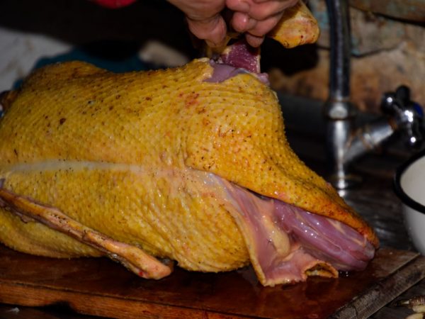 Первый шаг — это удаление кишков. Такая процедура является важной, особенно, если предполагается отправить утку на заморозку