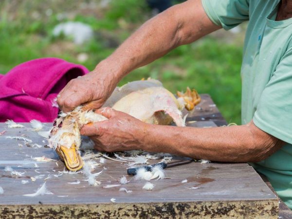 - Перед тем как выпотрошить битую птицу, важно произвести отрезание ее шеи.