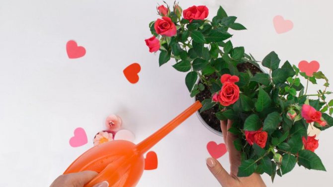 Поливать различные миниатюрные розы необходимо поздно вечером или ранним утром. При этом вода не должна попадать на нежные листья. В противном случае можно сильно обжечь пластины.