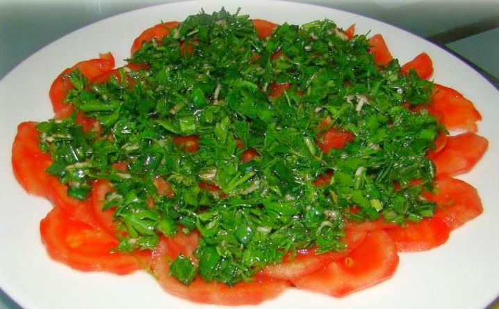 Карпаччо из томатов с зеленью
