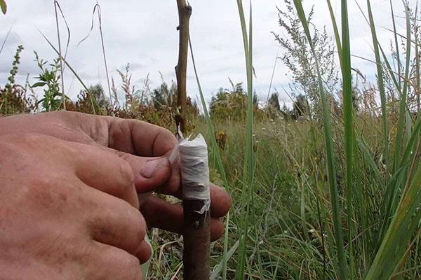 В верхней части основного растения сделать расщеп глубиной в 3 см и поместить в него привой. Место, где соединяются два элемента, обмотать полиэтиленом и тщательно завязать ниткой.