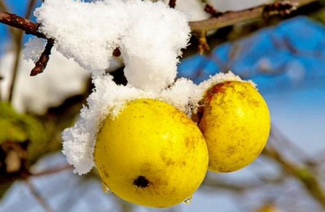 Сбрасывание листвы – естественный механизм защиты. Это защищает ветки от механических повреждений. Если яблони не сбросили листву на зиму, то веточки будут сломаны под тяжестью снега.