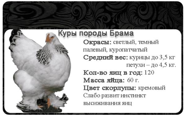 Зимой яйценоскость увеличивается. Это выгодно отличает брам от других пород, которые начинают нестись реже.