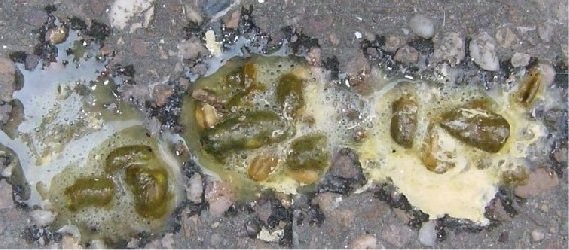- загрязнение пуха вблизи заднего прохода;
