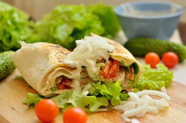 - особое внимание — на состав диетического соуса для шаурмы: майонез при правильном питании под строгим запретом, его нужно заменить натуральным йогуртом или сметаной с минимальным процентом жирности. Ну или приготовить какой-нибудь пп-майонез или другой диетический соус.