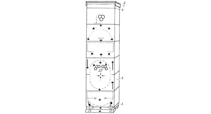 Например, пчеловодам хорошо известно, что многокорпусные конструкции обеспечивают естественное развитие пчелосемей. Тысячелетиями эти насекомые жили в дуплах деревьев – их домик был вертикальным.