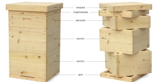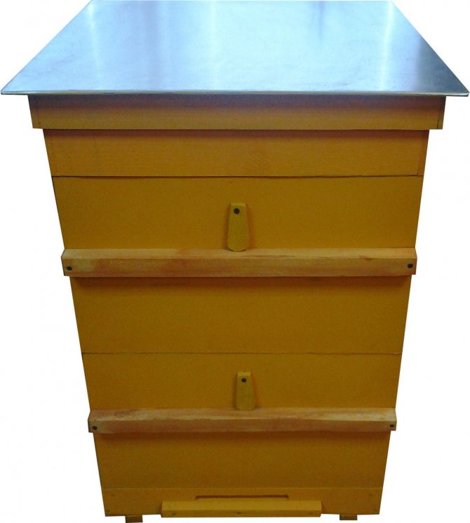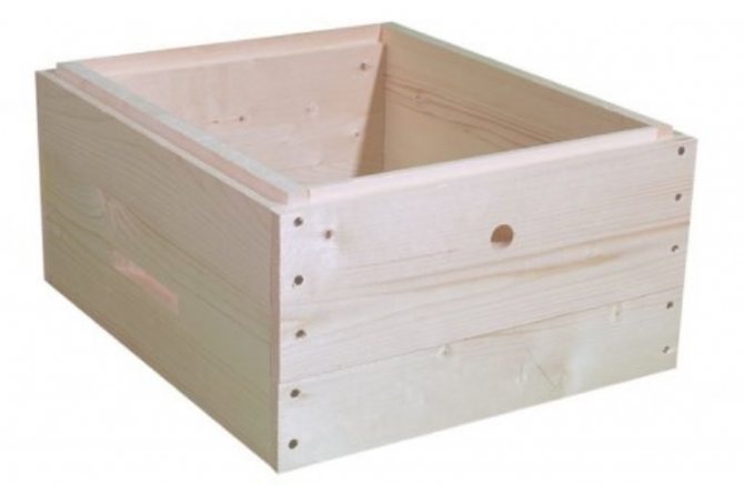 Корпус располагается в нижней части конструкции. Здесь имеются пазы, служащие фиксаторами для рамок. Размер корпуса может быть рассчитан на разное количество рамок, как правило, от 9 до 16.