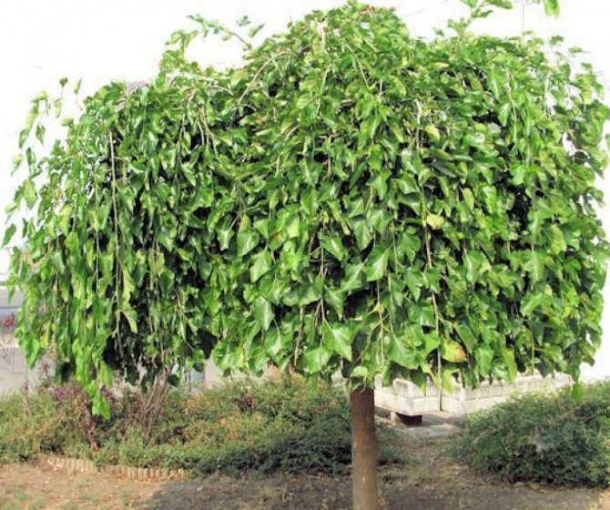 Растение не относится к капризным по уходу и содержанию, и при обрезке из него можно формировать любую декоративную форму. Прекрасно получается «плакучий» вид шелковицы, когда длинные с красивым изгибом ветви способны доставать до земли.