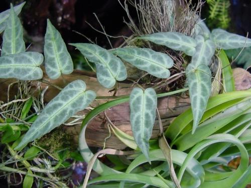 - Циссус амазонский (амазонка). Лиана с интересно окрашенными листьями — серебристо-голубоватыми с более светлыми прожилками. Снизу они пурпурные, как и стебли. Любопытна форма листовой пластины — цельная, узкая, слегка зубчатая, с заострённым кончиком. Длина листьев может составлять 12 см, но при суховатом воздухе они мельчают. Из-за дефицита света окраска может поблёкнуть.