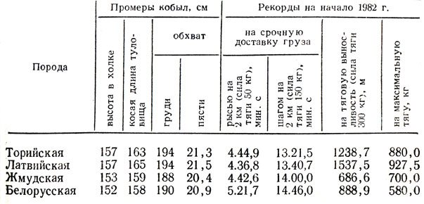 Эти породы хорошо приспособлены к условиям своего ареала, животные выносливы и отличаются отличной работоспособностью. Промеры лошадей упряжных пород приведены в таблице 9.